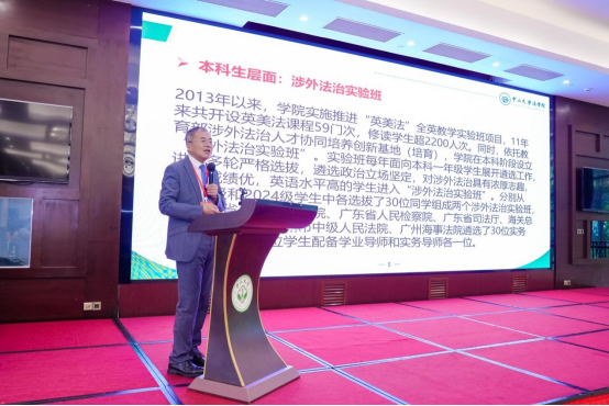 中山大学法学院党委书记梅成达出席开幕式并致辞。面对世界百年未有之大变局,梅书记强调加强涉外法治建设对维护国家主权、安全、发展利益以及推动构建人类命运共同体的重要意义。他引用习近平总书记重要指示,指出培养政治坚定、专业过硬、通晓国际规则、精通涉外法律实务的法治人才的紧迫性。对于此次研讨会,梅书记抱有极大的期待,坚信嘉宾的真知灼见将为课程体系优化等贡献力量,推动涉外法治人才培养迈上新台阶,服务国家战略。