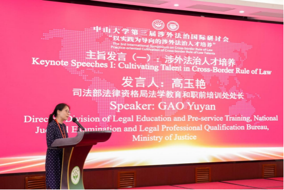主旨发言“涉外法治人才培养”环节由中山大学涉外法治研究院首席专家、教授黄瑶主持。