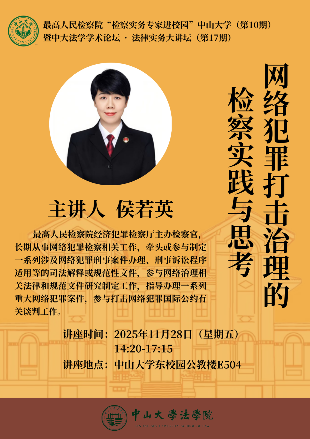 最高人民检察院“检察实务专家进校园”中山大学(第10期)、中大法学学术论坛·法律实务大讲坛(第17期):网络犯罪打击治理的检察实践与思考