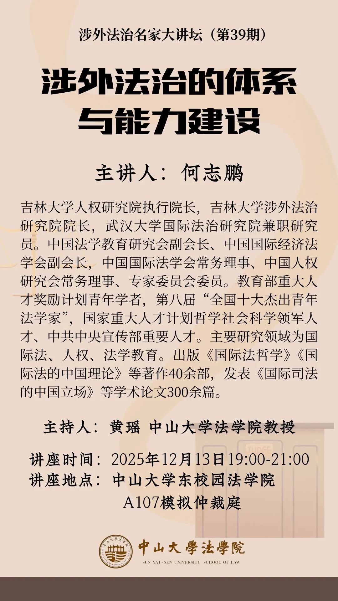 涉外法治名家大讲坛(第39期):涉外法治的体系与能力建设