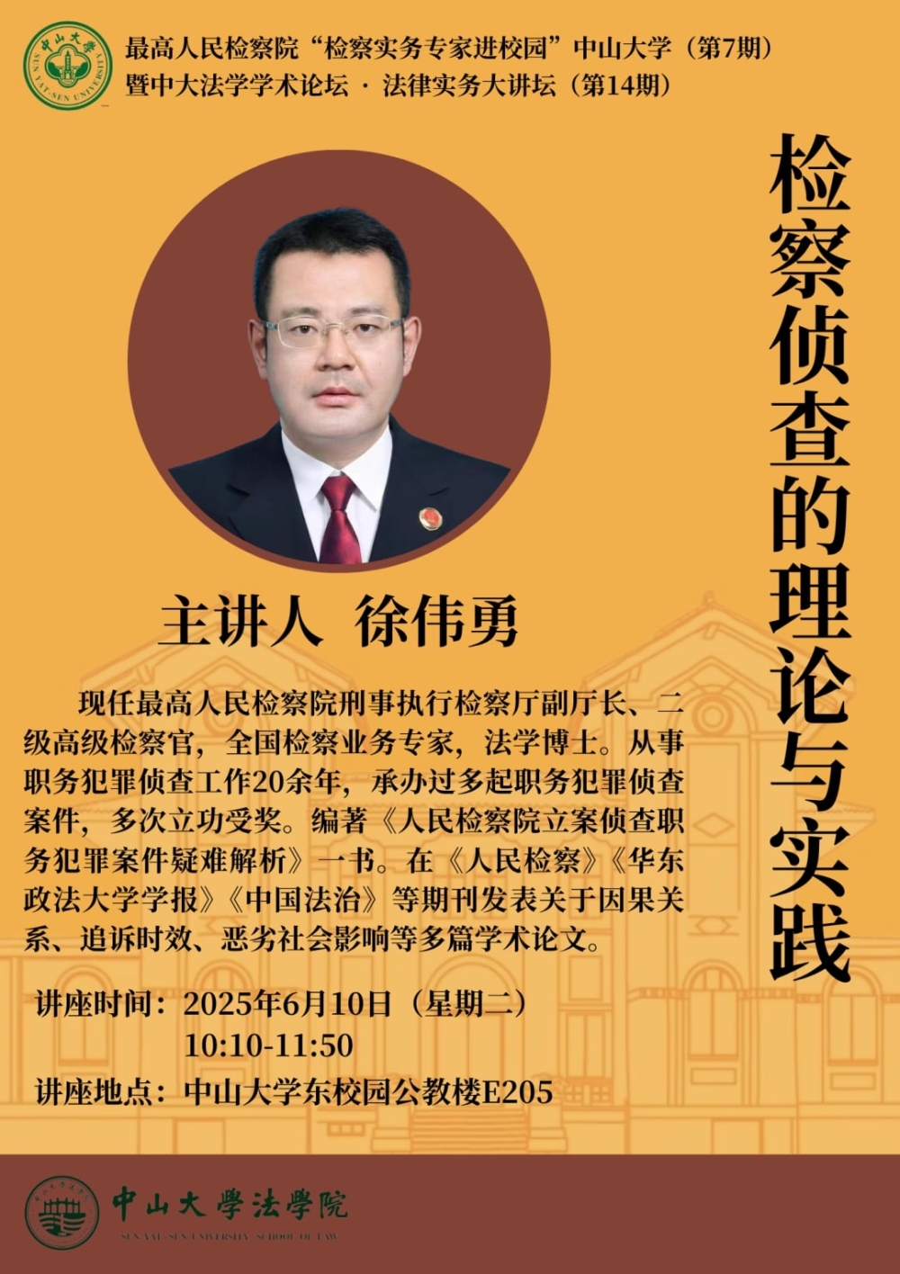 最高人民检察院“检察实务专家进校园”中山大学(第7期)、中大法学学术论坛·法律实务大讲坛(第14期)——检察侦查的理论与实践